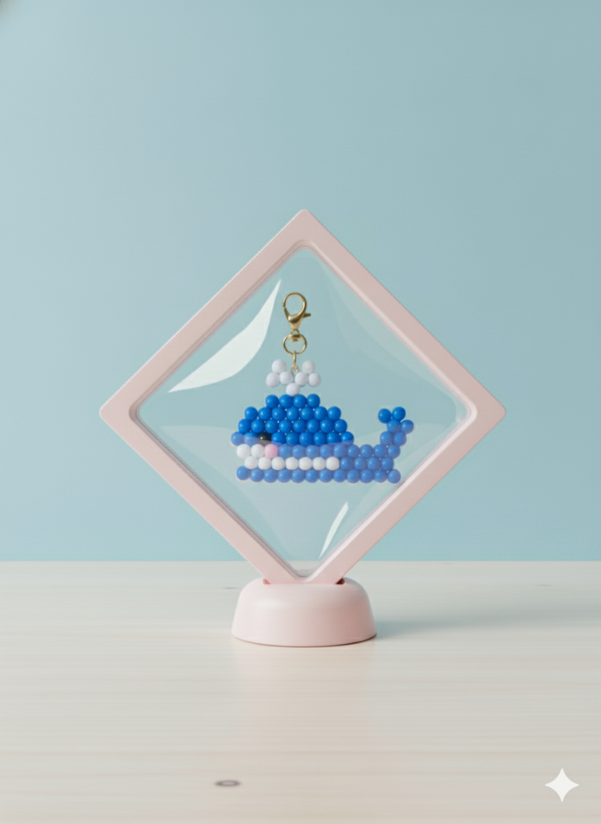 A bright and cheerful whale bead keychain, crafted with gradient blues and cute detailing. Lightweight, glossy, and perfect for ocean lovers.