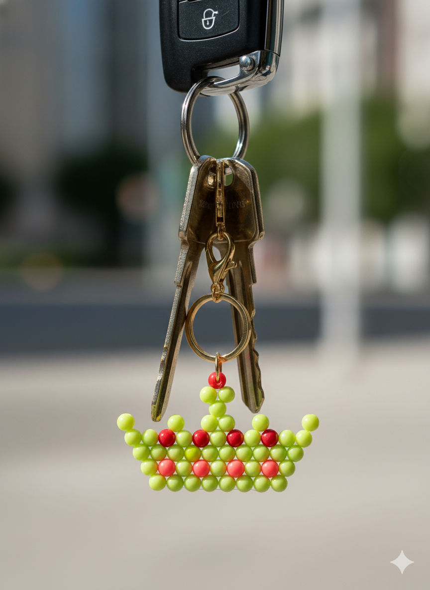 Handmade Beaded Crown Keychain – Kids’ Royal Charm
